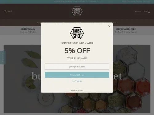 Are you still looking for real Gneiss Spice discount codes? Check now! We update the latest Gneiss Spice coupon codes and promo codes. Take advantage of Gneiss... More Spice coupons and deals to get a biggest discount. Gneiss Spice discount coupons will be updated hourly. Less
