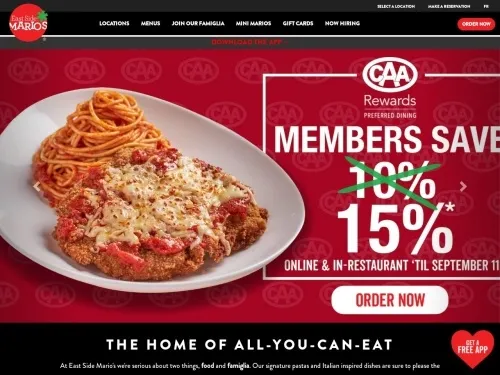 Are you still looking for real East Side Marios discount codes? Check now! We update the latest East Side Marios coupon codes and promo codes. Take advantage o... Moref East Side Marios coupons and deals to get a biggest discount. East Side Marios discount coupons will be updated hourly. Less